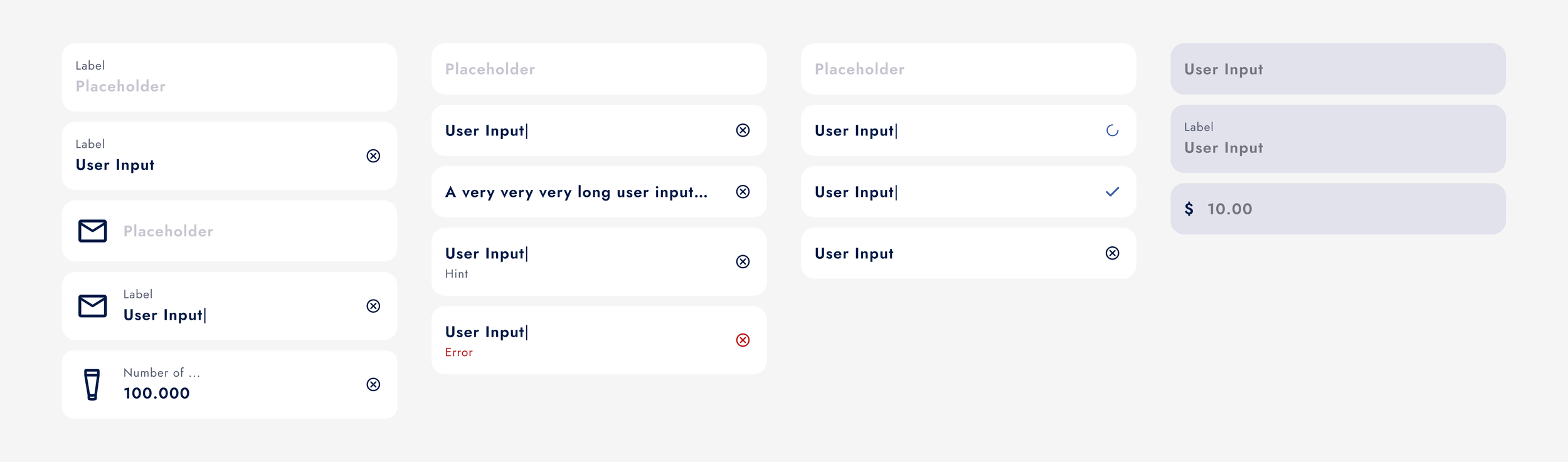 When creating the form fields, it was important to keep our minimalist style, but include lots of information. Our final form field has a very thin outline to differentiate it from the screen background. Like our buttons, there is no shadow because it seemed to age the feature. Clean and clear was the motive here. When building the app, these form fields continue to be expanded upon as new ideas popped up. However having a basic component to work from made these changes seamless.