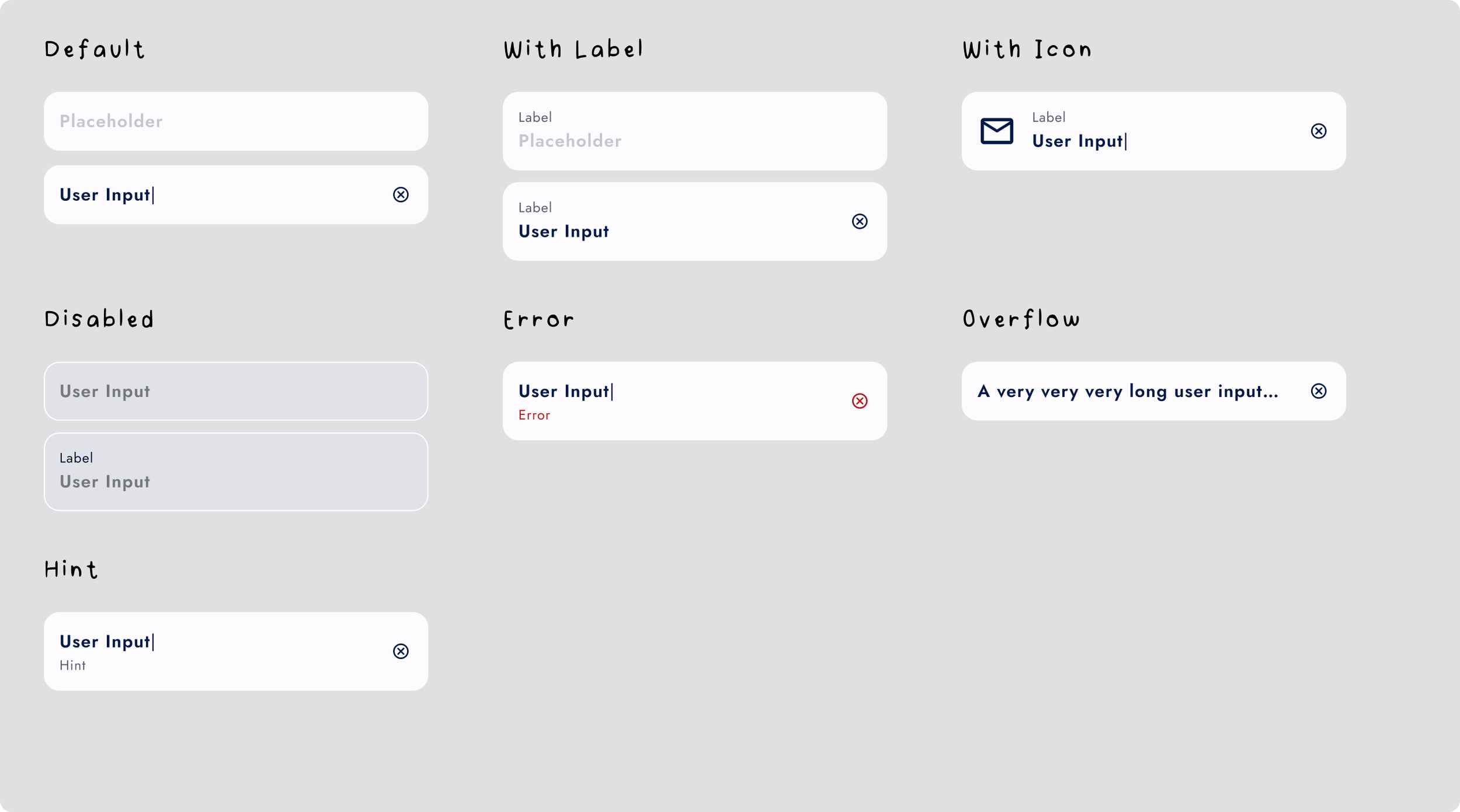 Designed with flexible labeling, icon support, validation states, and overflow states.