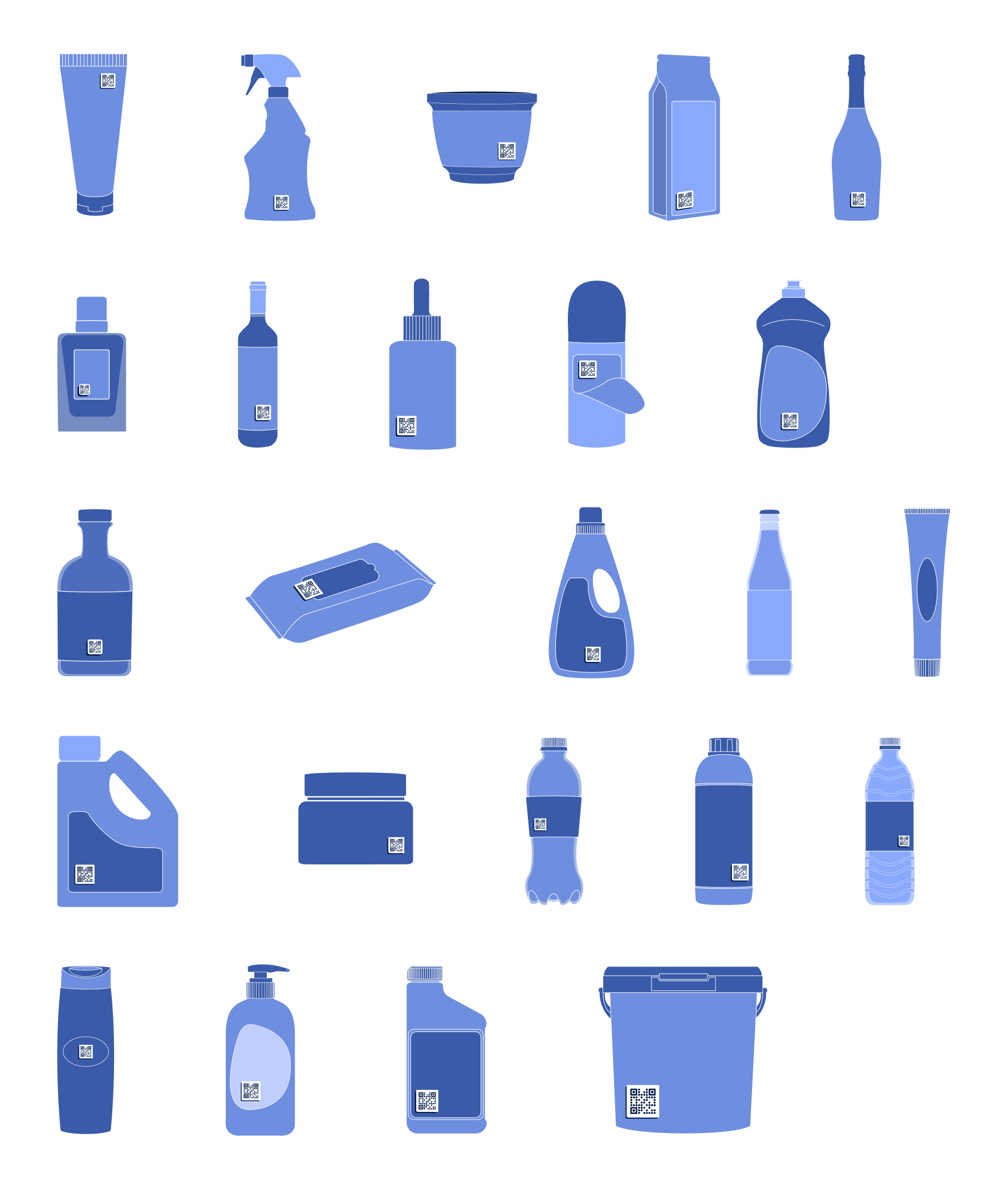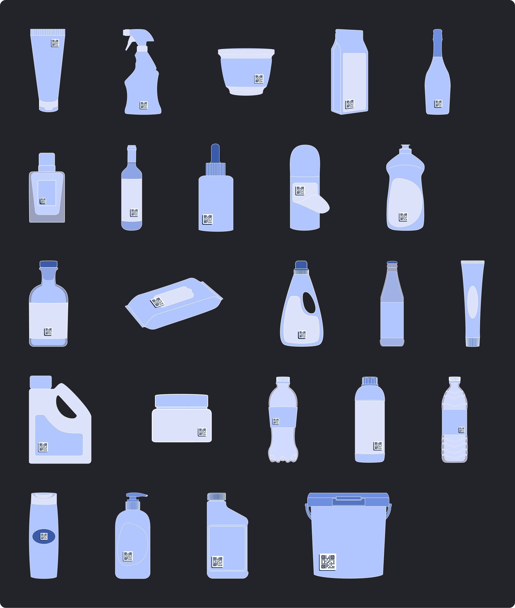 I developed a scalable illustration system that represented a wide range of packaging formats — bottles, boxes, multipacks, containers, cosmetics, and more — each designed to showcase how QR codes could be applied across different vessels and use cases.