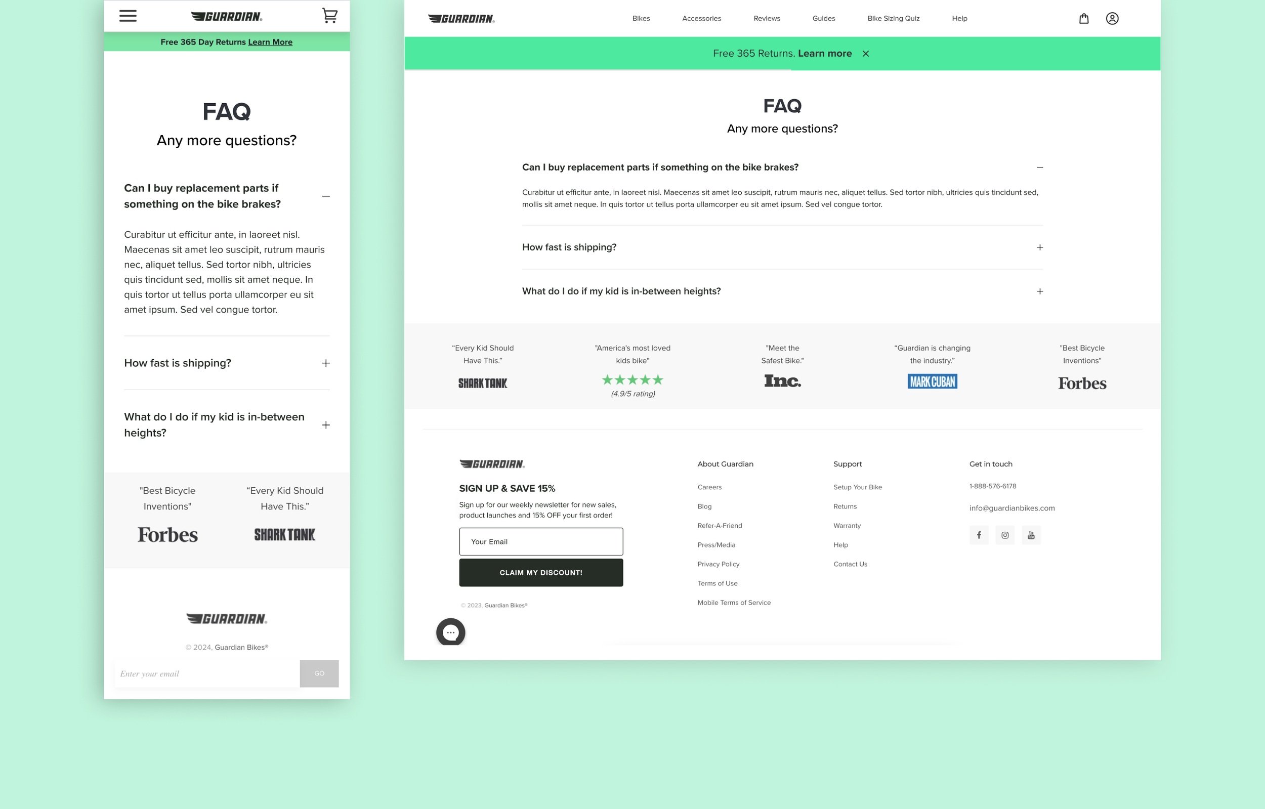 95% of users liked the diagram that highlights a Guardian bikes’ features. However, the same users also reported that they could not read the diagram on the mobile version. In response, I created a mobile-friendly version of this diagram.